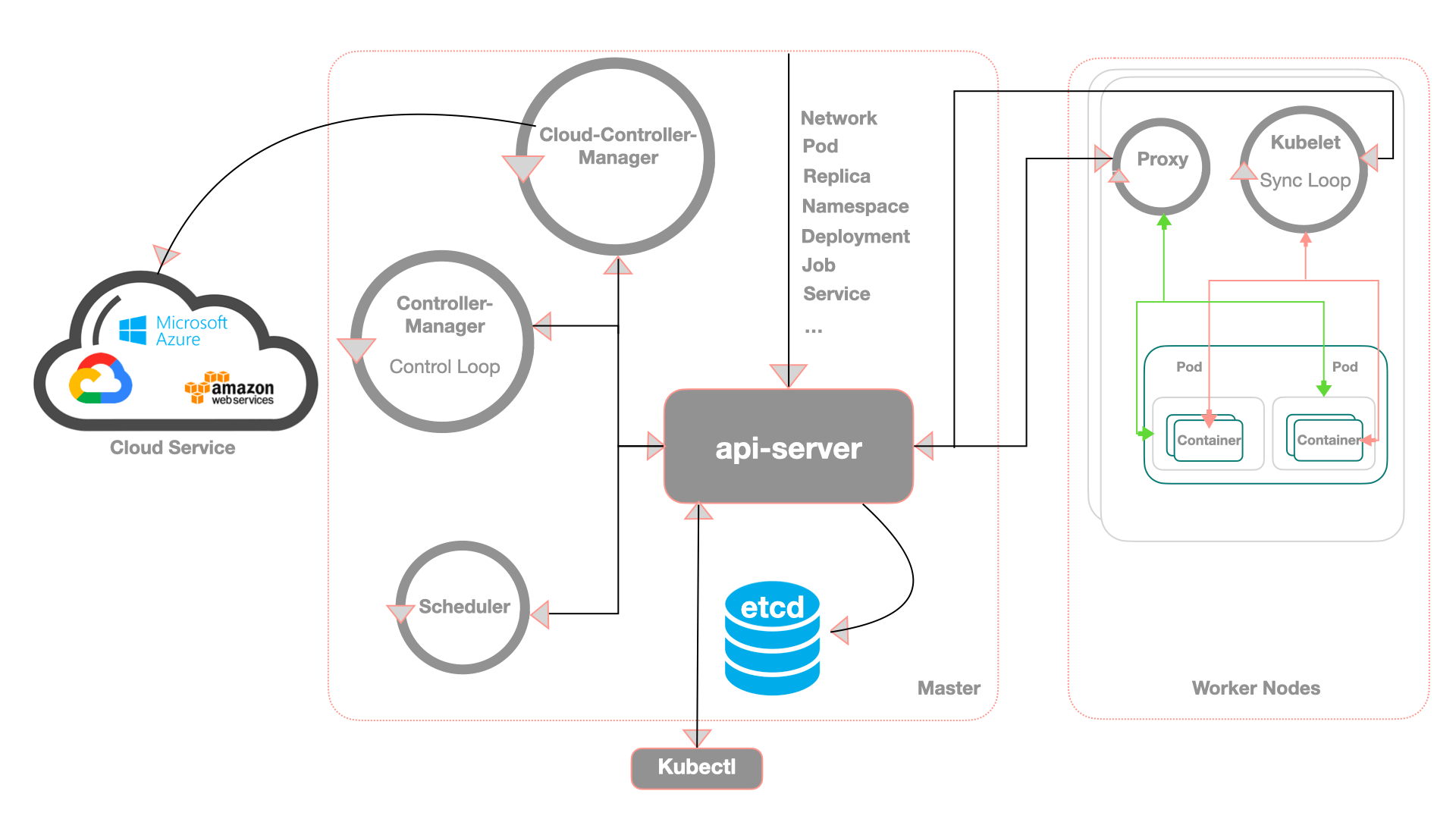 etcdkube-apiserverSans le kube-apiserver le cluster ne sert à rien. De plus, il est LE SEUL à interagir avec le cluster etcd, que ce soit en écriture ou en lecture.