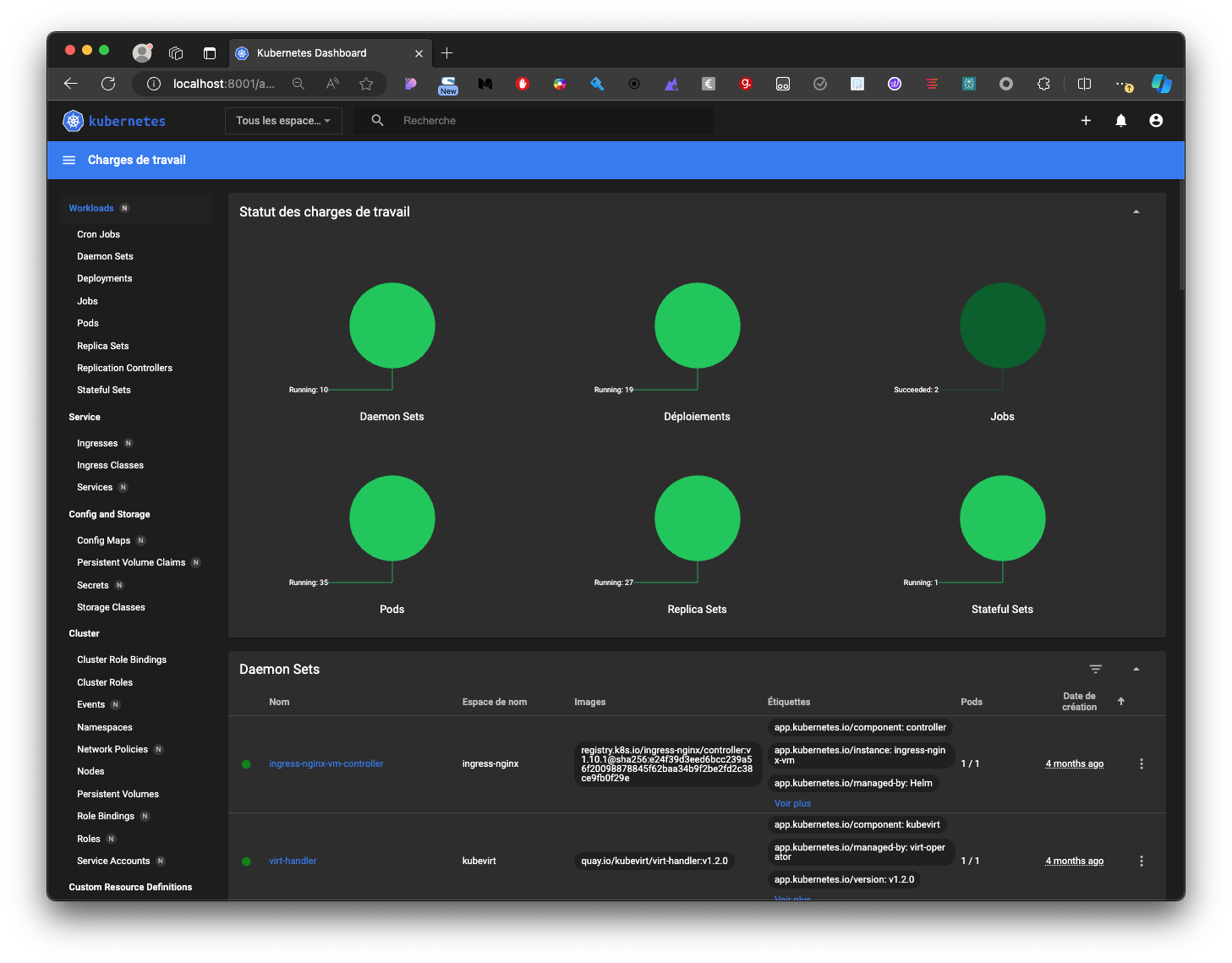 | Docker Desktop | Inclut une option pour exécuter Kubernetes directement. | - Facile à utiliser pour les développeurs habitués à Docker - Intégration transparente avec Docker |