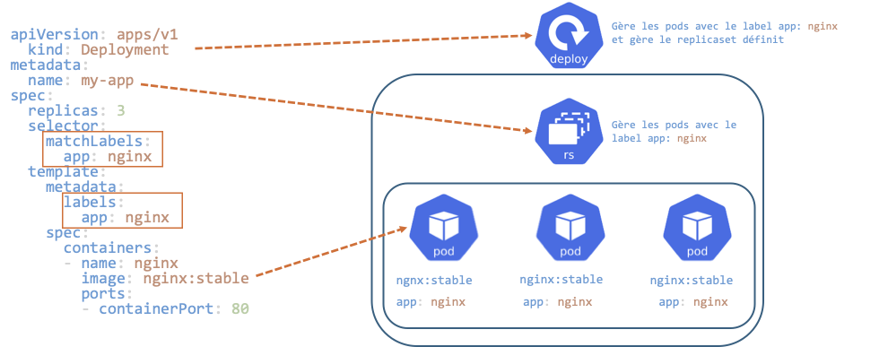 run: web-deploymentCe sélecteur doit correspondre aux labels des pods sinon le service ne pourra pas exposer les pods